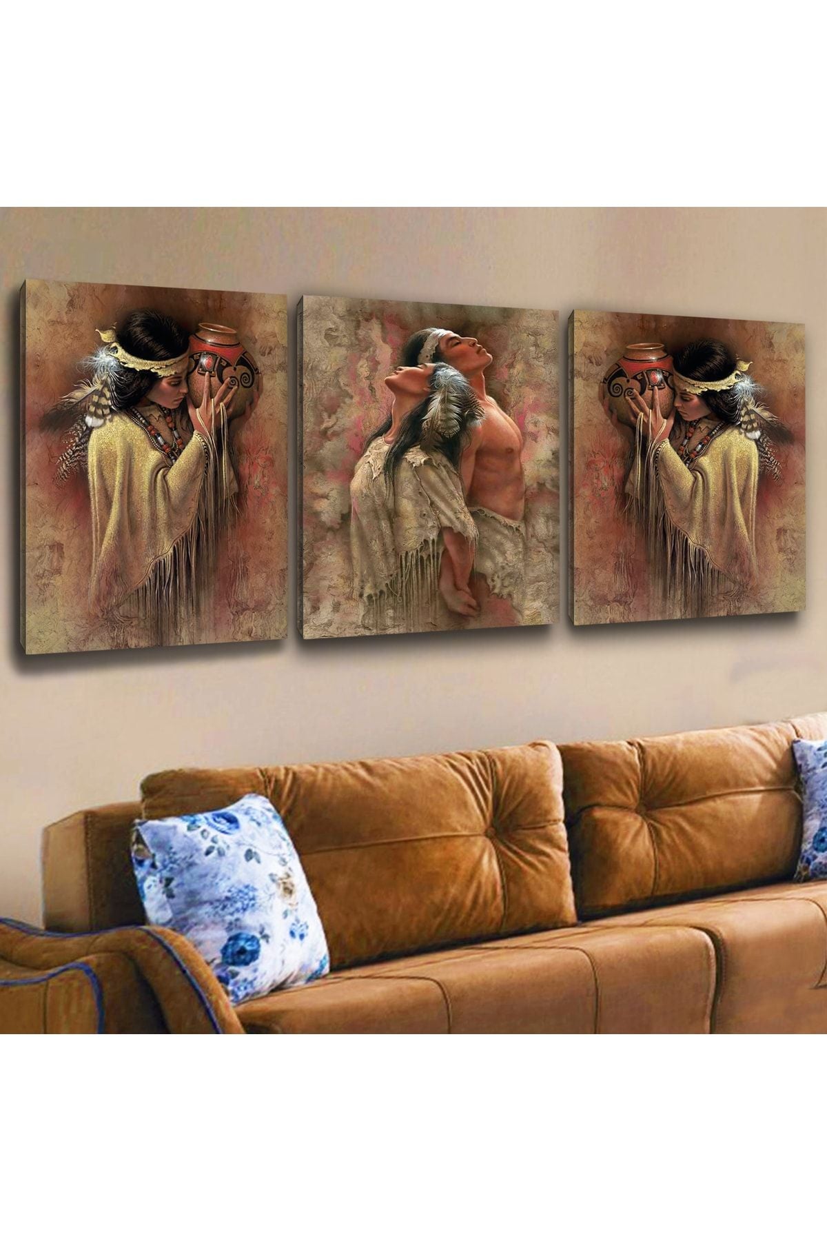 3'Lü Kanvas Afrikalı Kadınlar Tablosu