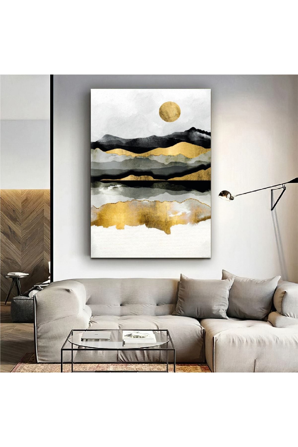 Kolaj Çizim Ay Dağ Kanvas Tablo