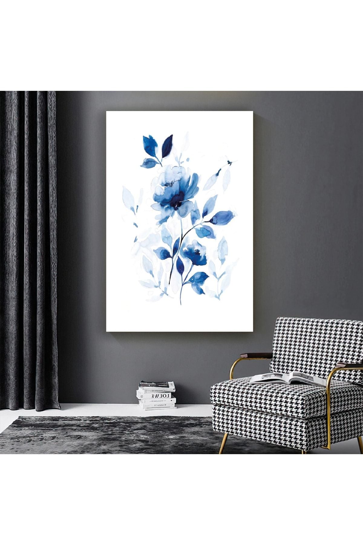 Kolaj Çizim Mavi Çiçek Kanvas Tablo